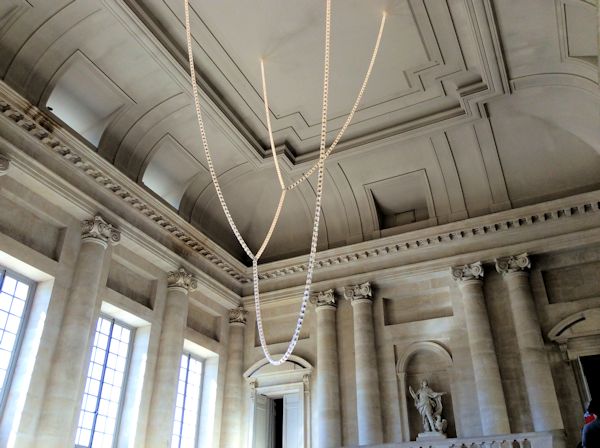 Because we were with a group we went through a separate entrance and skipped the ticket line. One of the perks of being on a tour. Inside, we went up a wide staircase an odd, modern Swarovski chandelier. It’s probably beautiful when lit and in a proper setting, like a modern hotel, but definitely seemed out of place in a 17th c. palace.
