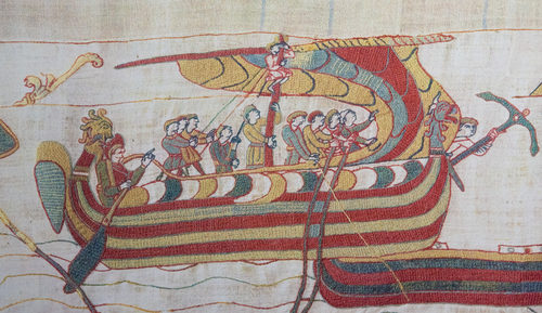 Bayeux tapestry Published March 5, 2017 at 500 × 289 in Bayeux tapestry BAYEUX, FRANCE – FEB 12: Detail of the Bayeux Tapestry depicting the Norman invasion of England in the 11th Century on February 12, 2013. This tapestry is more than 900 years old, no property release is required.