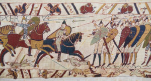 Bayeux tapestry Published March 5, 2017 at 300 × 161 in Bayeux tapestry BAYEUX, FRANCE – FEB 12: Detail of the Bayeux Tapestry depicting the Norman invasion of England in the 11th Century on February 12, 2013. This tapestry is more than 900 years old, no property release is required.