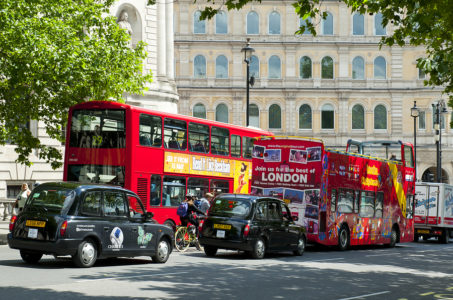London Published September 1, 2015 at 453 × 300 in London LONDON, ENGLAND – MAY 30: London double-decker buses and black taxi cabs in the city center on May 30, 2015 in London