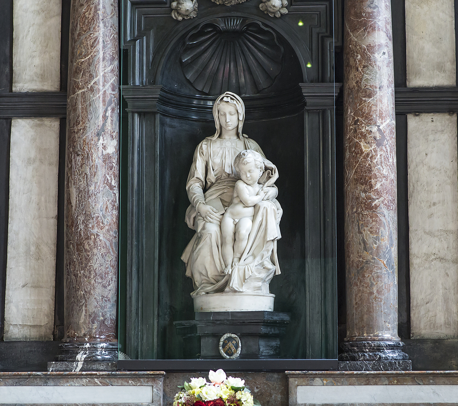 Madonna of Bruges by Michelangelo, Bruges, Belgium Published June 1, 2015 at 900 × 799 in Madonna of Bruges by Michelangelo, Bruges, Belgium BRUGES, BELGIUM – JULY 30, 2014 : Madonna of Bruges by Michelangelo in church of Our Lady Bruges, July 30, 2014, in Bruges, Belgium